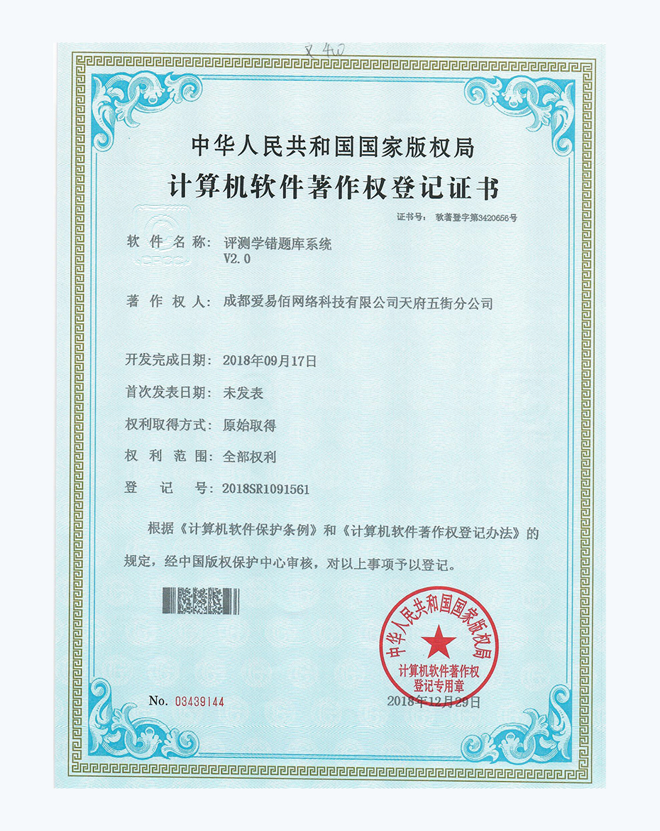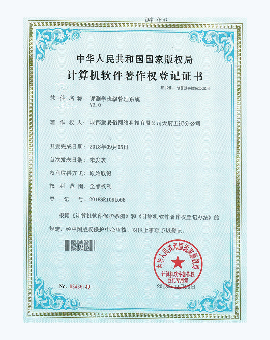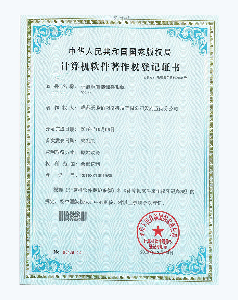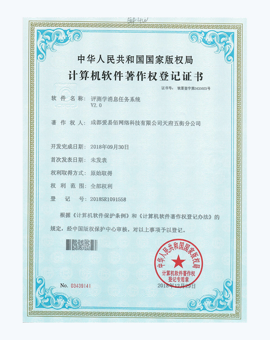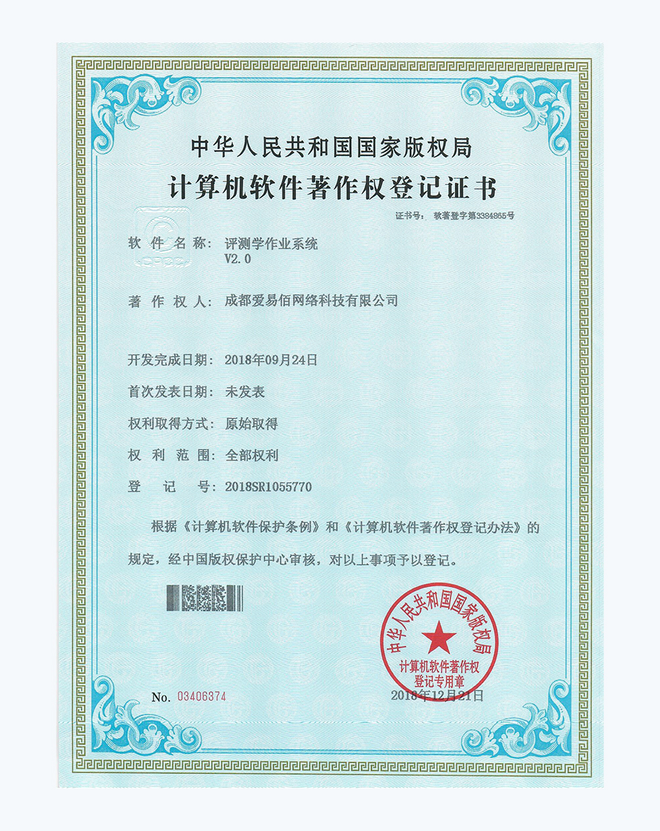 评测学在研发中获得7大专利发明保护,6大软件著作权证书,科研课题由省市迈向国家级,申报中央电教馆2017年度课题成功立项。